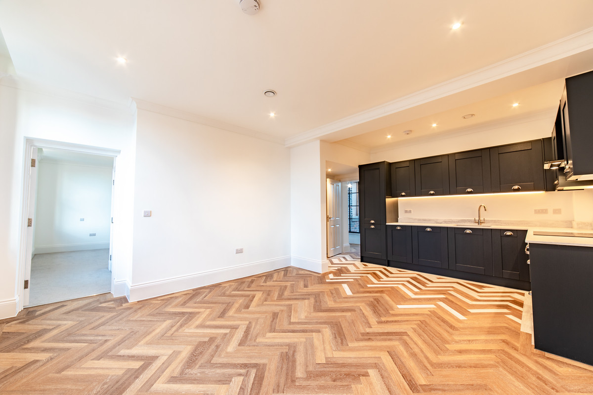 Featuring original Victorian windows and heritage details, the apartment has been meticulously restored, blending its authentic charm with contemporary touches. From the elegant shaker-style kitchen equipped with top-of-the-line Samsung appliances to the spacious, open-plan layout, every detail has been crafted with care.